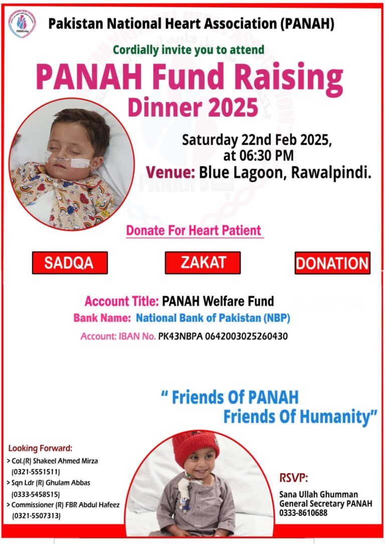 Account Title PANAH Account # 3025253573 Bank Name: National Bank of Pakistan